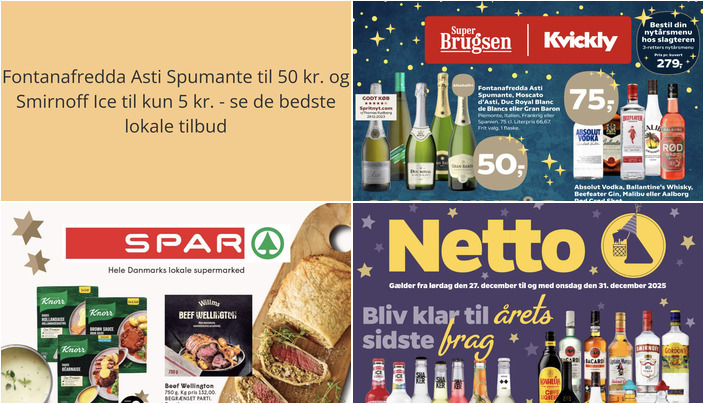 Kvickly tilbyder Fontanafredda Asti Spumante, Moscato d'Asti, Duc Royal Blanc de Blancs eller Gran Baron til kun 50 kr. pr. flaske (75 cl). Dette tilbud er gældende fra lørdag den 27. december til onsdag den 31. december.